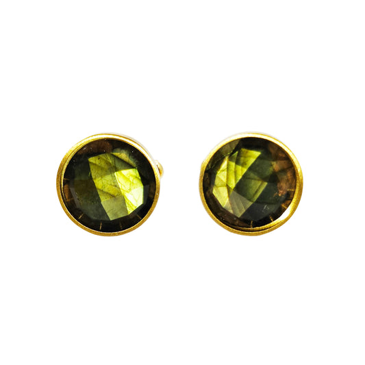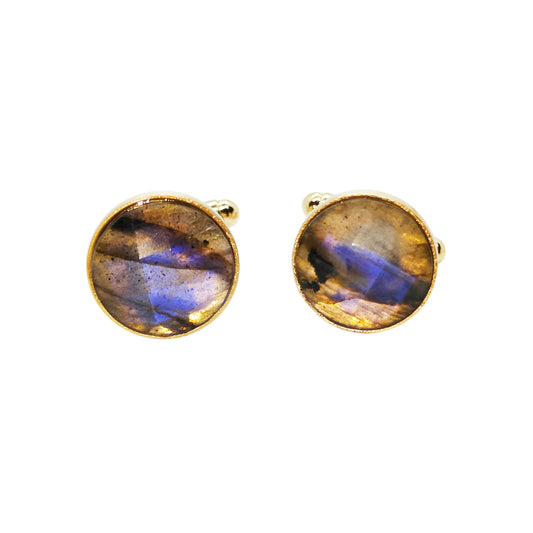 PRO - Boutons de manchettes 14 mm en métal et labradorite verte à facettes