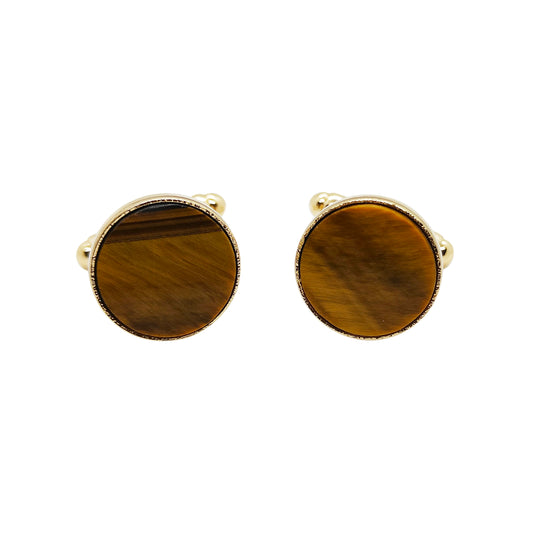 PRO - Boutons de manchettes 14 mm en métal et oeil-de-tigre