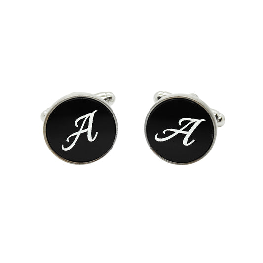 PRO - Boutons de manchettes 14 mm en métal et onyx noir - Personnalisables