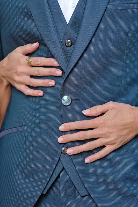 PRO Bouton 21mm en métal et labradorite bleu lagon à facettes